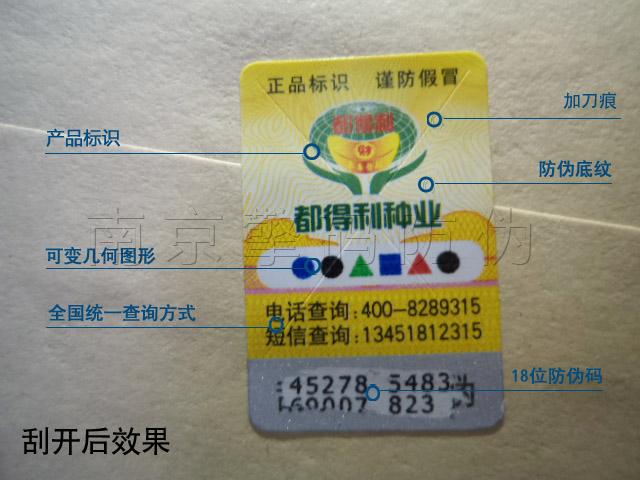 | 不同的產(chǎn)品防偽標(biāo)簽來(lái)源于不同的防偽公司,在中國(guó)還沒(méi)有一個(gè)平臺(tái)可以查詢(xún)所有防偽公司的防偽碼,所以要看清防偽標(biāo)簽上面的查詢(xún)電話(huà)或網(wǎng)址,找到對(duì)應(yīng)的防偽公司,每個(gè)防偽公司都有自己獨(dú)立的防偽查詢(xún)平臺(tái)。 |