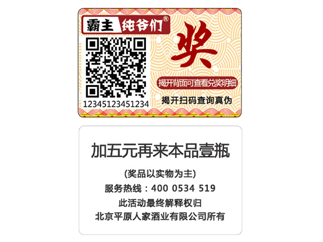| 您好,我們的標(biāo)簽都是批量印刷,而且標(biāo)簽保證您在3年之內(nèi)都可以有效的查詢(xún),我們采用的紙張都是進(jìn)口艾利紙,膠性都是強(qiáng)力膠,所以您可以放心,做的少對(duì)您不劃算,起印費(fèi)都和標(biāo)簽的制作費(fèi)用差不多了. |