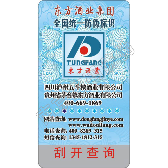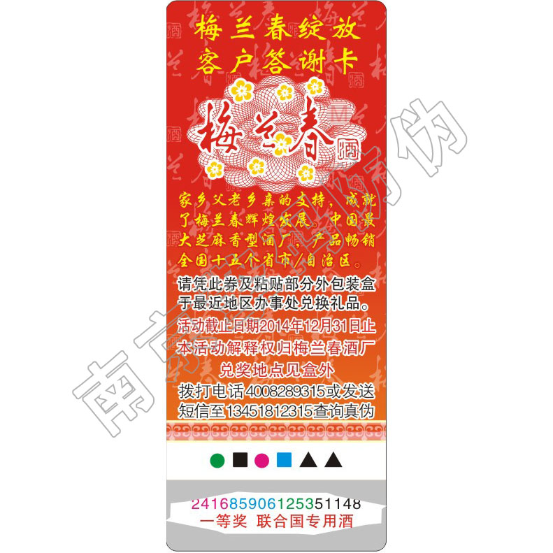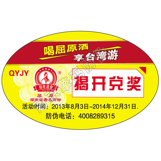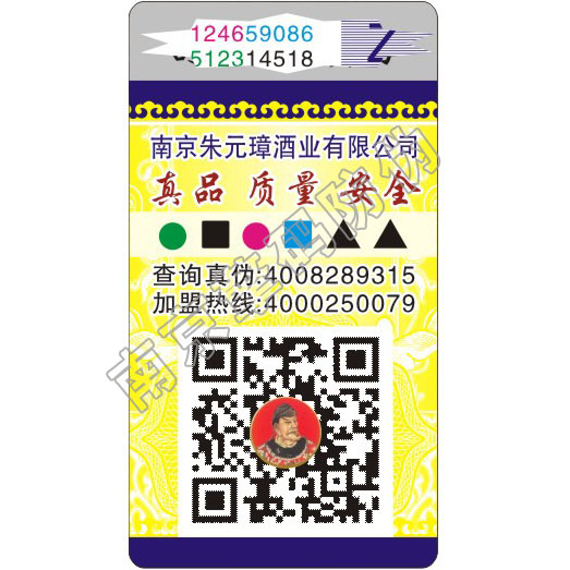 2.防竄貨套標(biāo): 如果你年產(chǎn)量大,銷售網(wǎng)絡(luò)廣,地區(qū)之間價(jià)格差異大,正在為經(jīng)銷商之間竄貨而困惑,建議你使用防竄貨套標(biāo)。