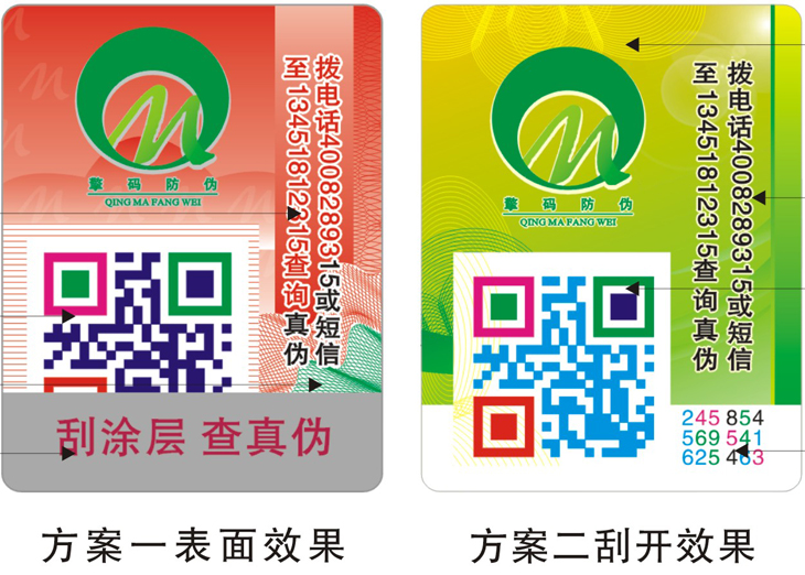 彩色二維碼防偽技術(shù)特點: 1、提高了防偽技術(shù)含量,彩色二位碼防偽標簽是目前防偽行業(yè)比較先進的技術(shù),全中國能實現(xiàn)這一技術(shù)的寥寥無幾,普通的印刷廠是無法印刷出可變彩色二維碼標簽的。所以讓造假者無機可乘,望而生畏。 2、方便消費者查詢,消費者再也不用輸入那長長的產(chǎn)品防偽碼了,拿出手機一掃即可得知產(chǎn)品真?zhèn),方便快捷,受到廣大消費者的喜愛。 3、彩色二維碼標簽不再單調(diào),更加美觀,總有客戶抱怨老的黑白二維碼標簽不美觀,與產(chǎn)品包裝不協(xié)調(diào),彩色二維碼標簽一出世,這一問題迎刃而解。 4、彩色二維碼標簽讓你的產(chǎn)品脫穎而出,使得銷量大增。在我們生活中各個地方,都能看見二維碼身影,戶外廣告牌上、公交車上、車身廣告、書本上、網(wǎng)站上、產(chǎn)品包裝上等等,真可謂是無處不在。但是你會發(fā)現(xiàn)基本上都是黑白二維碼。若產(chǎn)品包裝上能出現(xiàn)彩色二維碼將引起消費者的好奇,吸引消費者的眼光,達到某種促銷的意義。