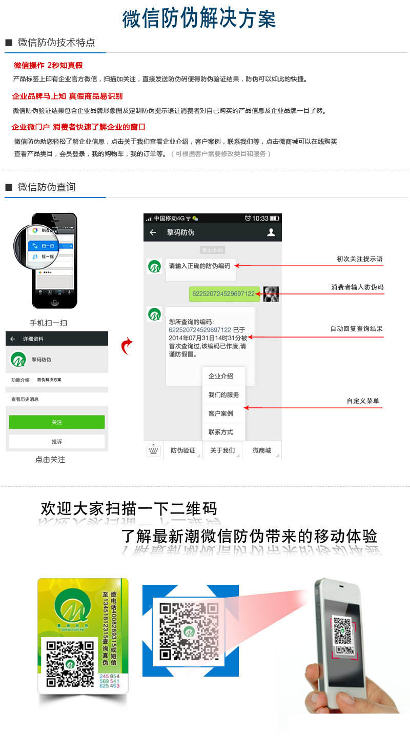 當(dāng)前位置:擎碼首頁 >> 擎碼服務(wù) >> 防偽技術(shù) >> 微信防偽 |