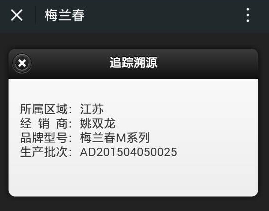 追溯主要是讓消費者了解產(chǎn)品的來源,企業(yè)可利用追溯防止竄貨,原理是企業(yè)在后臺預(yù)先設(shè)置區(qū)域和經(jīng)銷商,在發(fā)貨給經(jīng)銷商時將產(chǎn)品的身份編碼與經(jīng)銷商對應(yīng),當(dāng)產(chǎn)品流入各大賣場時,就能輕松查詢出該產(chǎn)品屬于XX區(qū)域XX經(jīng)銷商下的產(chǎn)品。