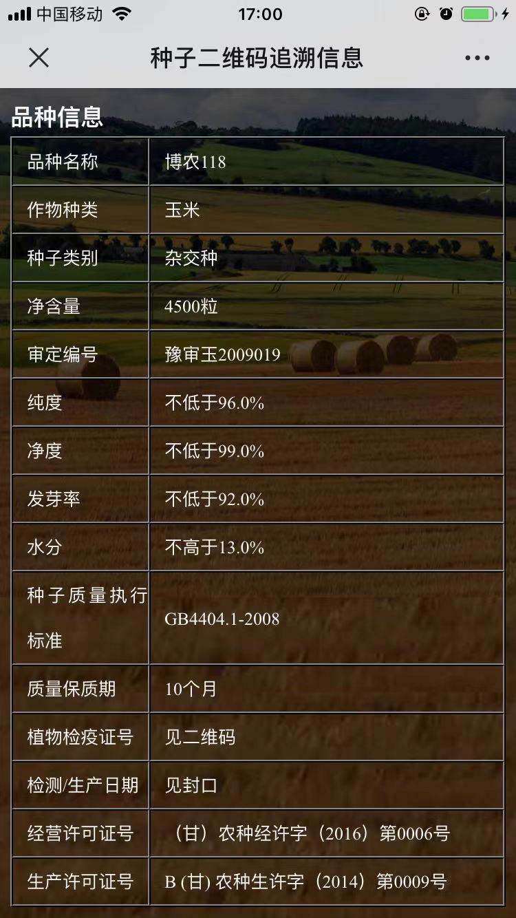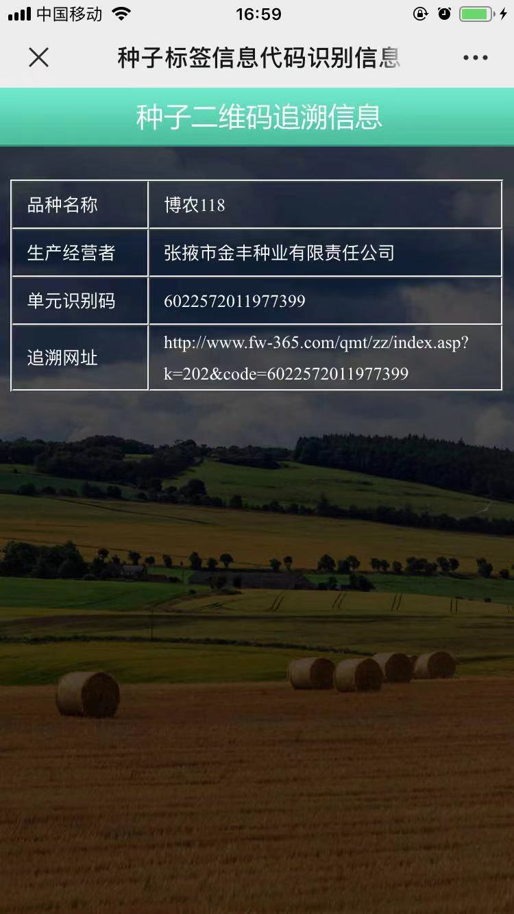 農(nóng)業(yè)部制定了《農(nóng)作物種子標(biāo)簽二維碼編碼規(guī)則》,要求種子類產(chǎn)品每袋上必須印制二維碼,展示種子品種、生產(chǎn)經(jīng)營(yíng)者信息、單位識(shí)別碼、追溯網(wǎng)址。 針對(duì)農(nóng)業(yè)部規(guī)定,我們?yōu)檗r(nóng)作物種子實(shí)施二維碼追溯管理,廠家利用采集器掃描二維碼進(jìn)行出貨管理。消費(fèi)者用手機(jī)掃描二維碼,顯示品種名稱、生產(chǎn)經(jīng)營(yíng)者名稱或進(jìn)口商名稱、單元識(shí)別代碼、追溯網(wǎng)址四項(xiàng)信息,一個(gè)二維碼搞定,同時(shí)可以加入防偽查詢,真正實(shí)現(xiàn)一物一碼,一碼多用。 1.手機(jī)掃描二維碼顯示四項(xiàng)信息 |